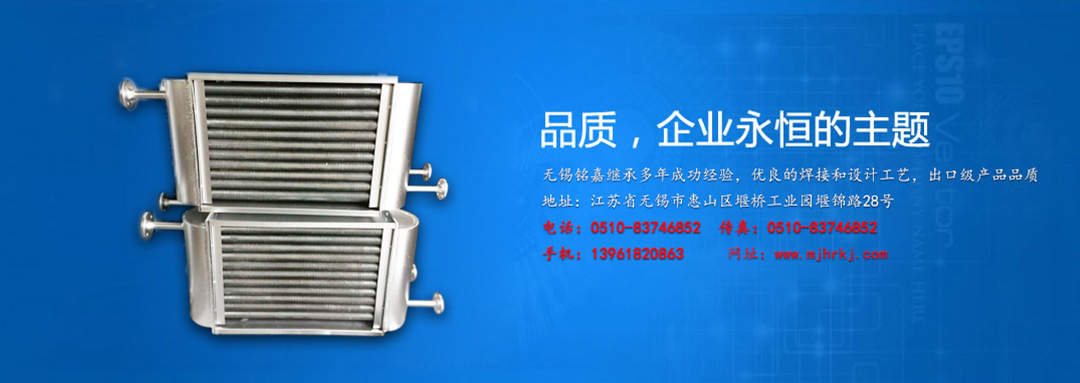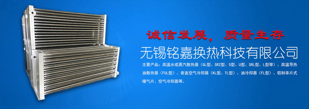 無錫銘嘉換熱科技有限公司是生產散熱器的專業工廠。 產品有:高溫水或蒸汽散熱器高溫導熱油散熱器、表面空氣冷卻器、油冷卻器鋁制串片式暖氣片空氣冷卻器翅片管換熱器